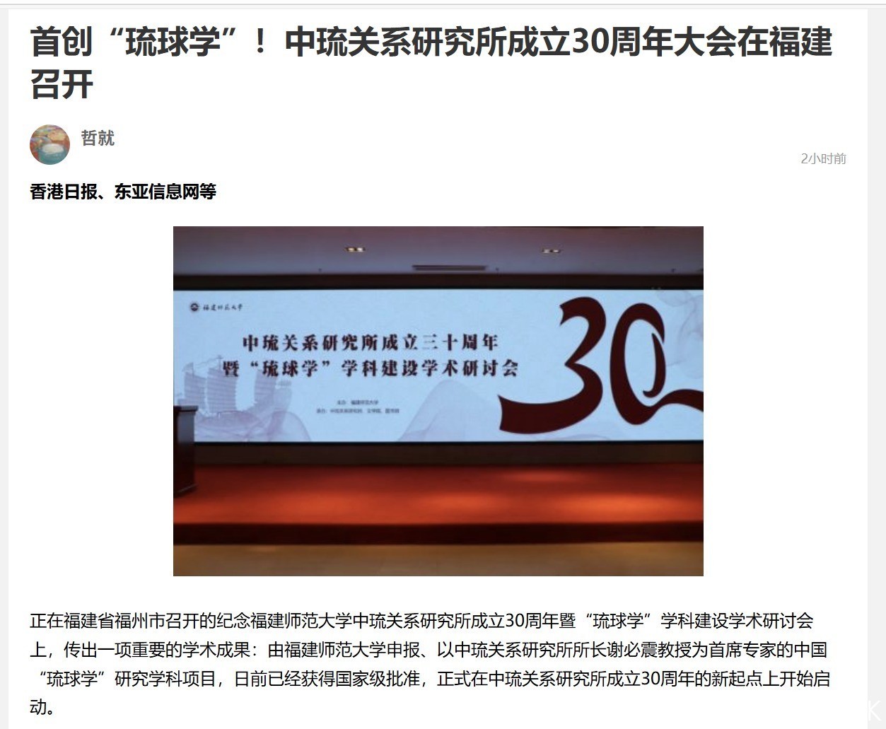 与此同时,还有一条国内新闻,也值得说一说。11月15日,福建师范大学举行了一场“琉球学”研究讨论会。福建师大在1995年就成立了中琉关系研究所,是国内研究琉球历史最权威的机构之一。它的关注点一直是琉球与中国的关系史以及与整个亚太地区的历史脉络。它在这个时间点开会,本身就说明某些问题正在升温。